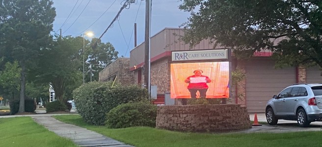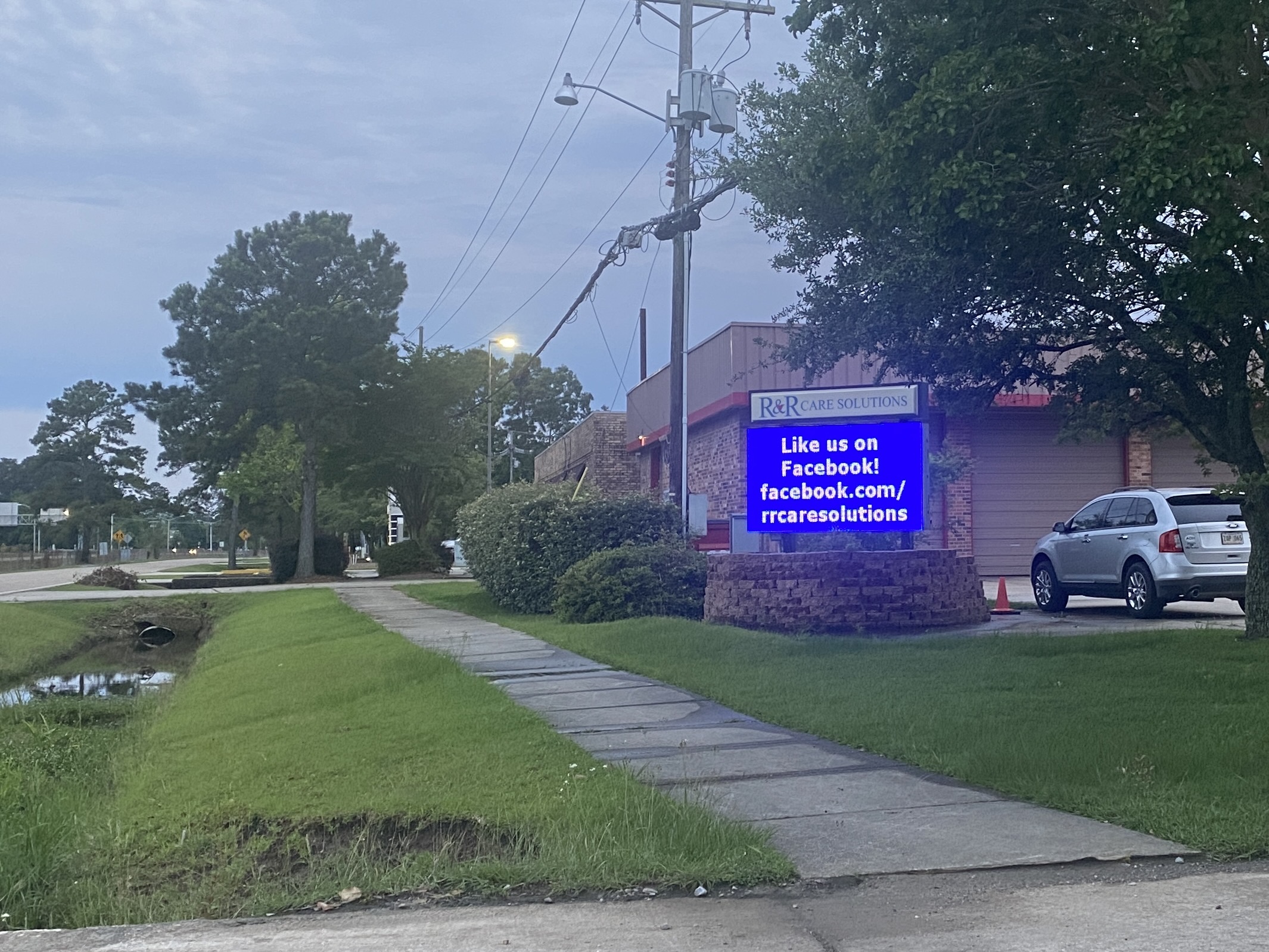 R&R Care Solutions, 1808 N. Causeway Blvd., Tuesday, May 11, 2021. This sign would not fit within the 50% rule proposed in the ordinance, and is in apparent violation, pass or fail. Mayor Clay Madden said in a statement, enforcement would resume immediately after the May 13th meeting vote. (Source: Mandeville Daily)
