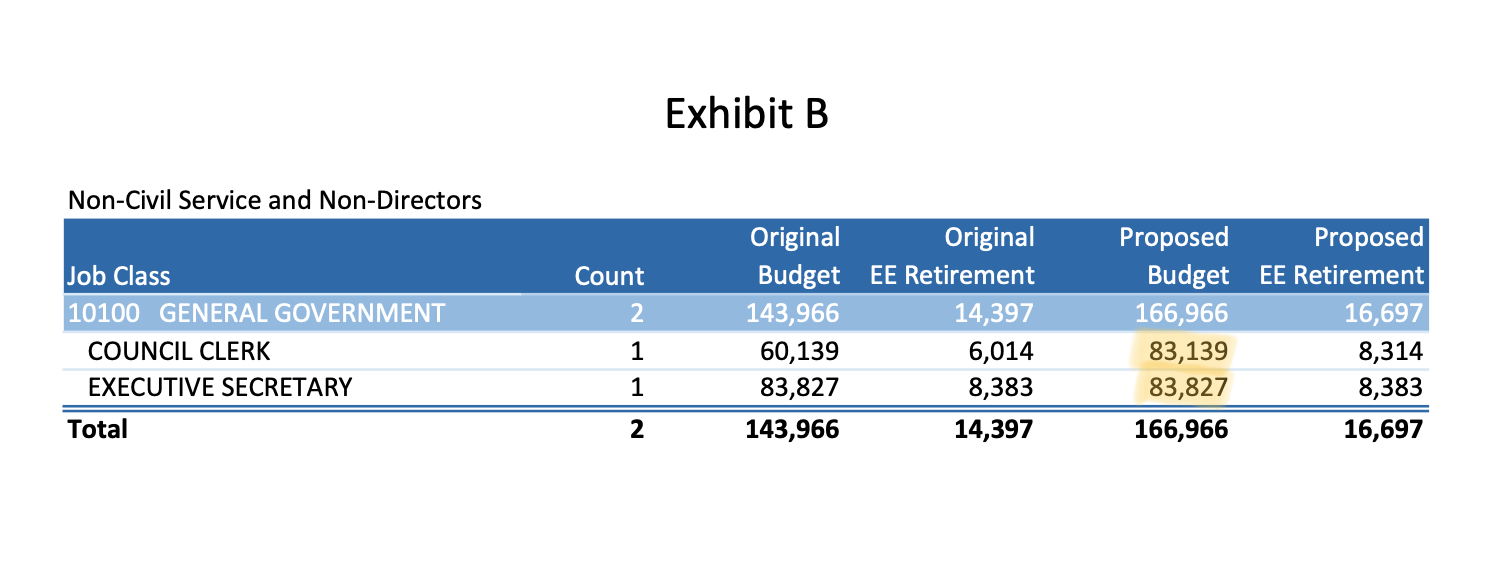 And that was it. Those words — as mousy and conflicting as they were — was the first time the public at an open meeting had been informed or pitched the idea of a raise for the council clerk.