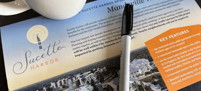 And just like that, the once ambitious plan for a hotel, events center, apartments and marina at the west end of the Mandeville lakefront came crashing down to the reality that three of the five City Council members are having nothing to do with a development with the density proposed by the Sucette Harbor team.